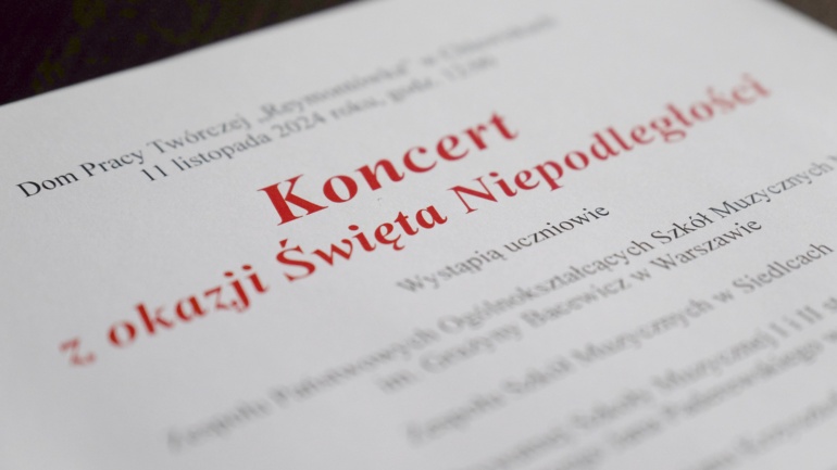 11 listopada w Domu Pracy Twórczej "Reymontówka" w Chlewiskach odbyÅ‚ siÄ™ koncert fortepianowy z okazji ÅšwiÄ™ta NiepodlegÅ‚oÅ›ci. MieliÅ›my okazjÄ™ wysÅ‚uchać 16 utworów w wykonaniu uczniów ZespoÅ‚u PaÅ„stwowych OgólnoksztaÅ‚cÄ…cych Szkół Muzycznych nr 3 im. Grażyny Bacewicz w Warszawie, ZespoÅ‚u Szkół Muzycznych w Siedlcach oraz Prywatnej SzkoÅ‚y…